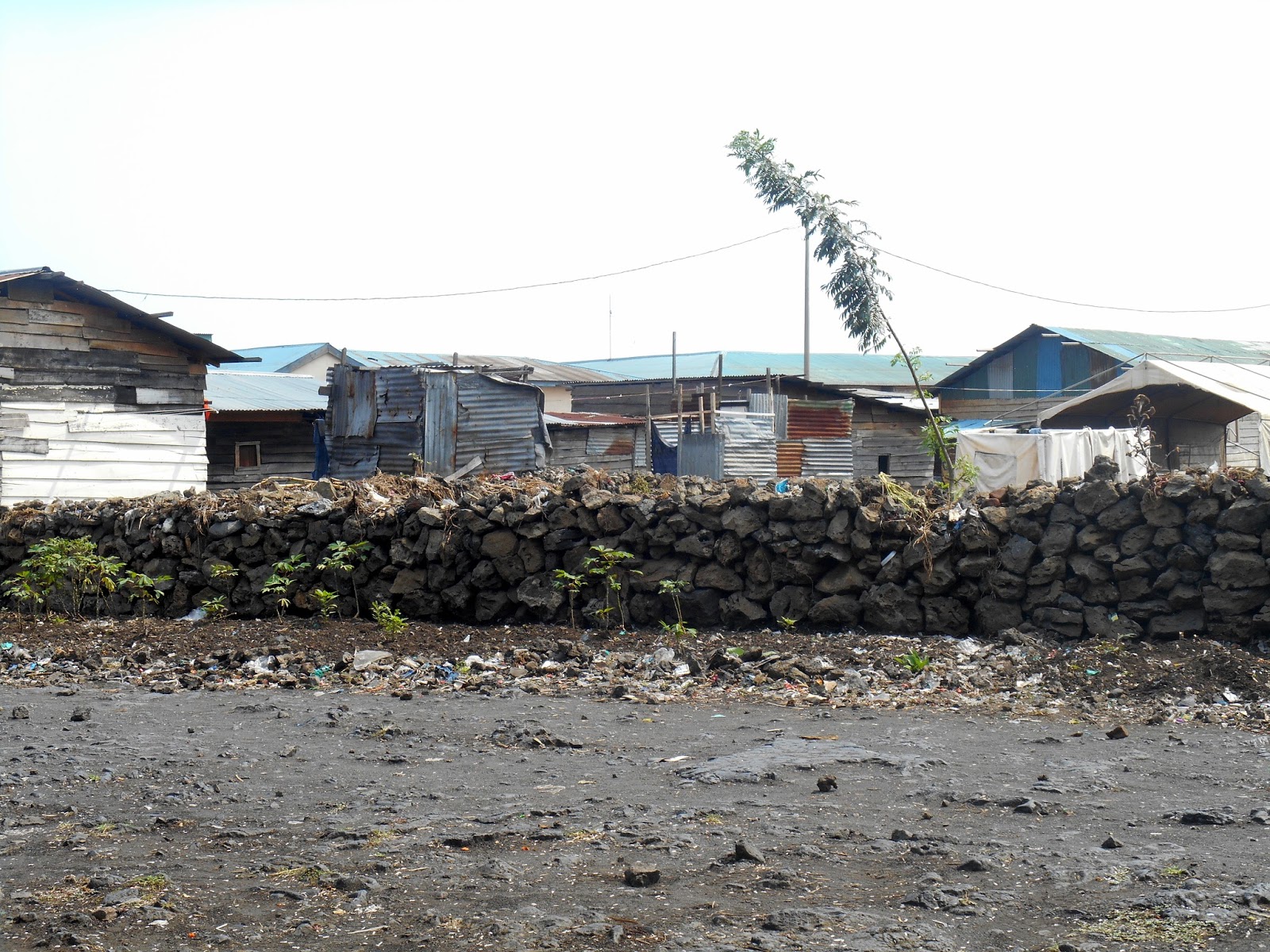 Una strada di Goma, tutta in pietra lavica. Sullo sfondo le abitazioni
