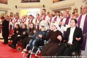 La Messa iniziava con la processione d’ingresso con Pashk, il più piccolo in carrozzina. E poi i canti di Regjina (la ragazza che vive qui), a cui chiedeva anche di servir Messa…chiunque ci fosse!!! E se celebrava lui era certo che si sarebbe asciugato le mani aprendo il manutergio in modo che Regjina chiedesse aiuto per piegarlo a Dila, che così usava un po’ della sua sapienza da perpetua. Poi ci sarebbe stato il segno di croce sulla fronte di Fabjan, il ragazzo di casa, l’unico a non fare la comunione, ma a cui arrivava la benedizione. Per concludere con la processione finale con Pashk, ma arricchita dalla gara tra il piccolo e Regjina per spegnere le candele, tra i sorrisi di Lena, Mrika e tutti.