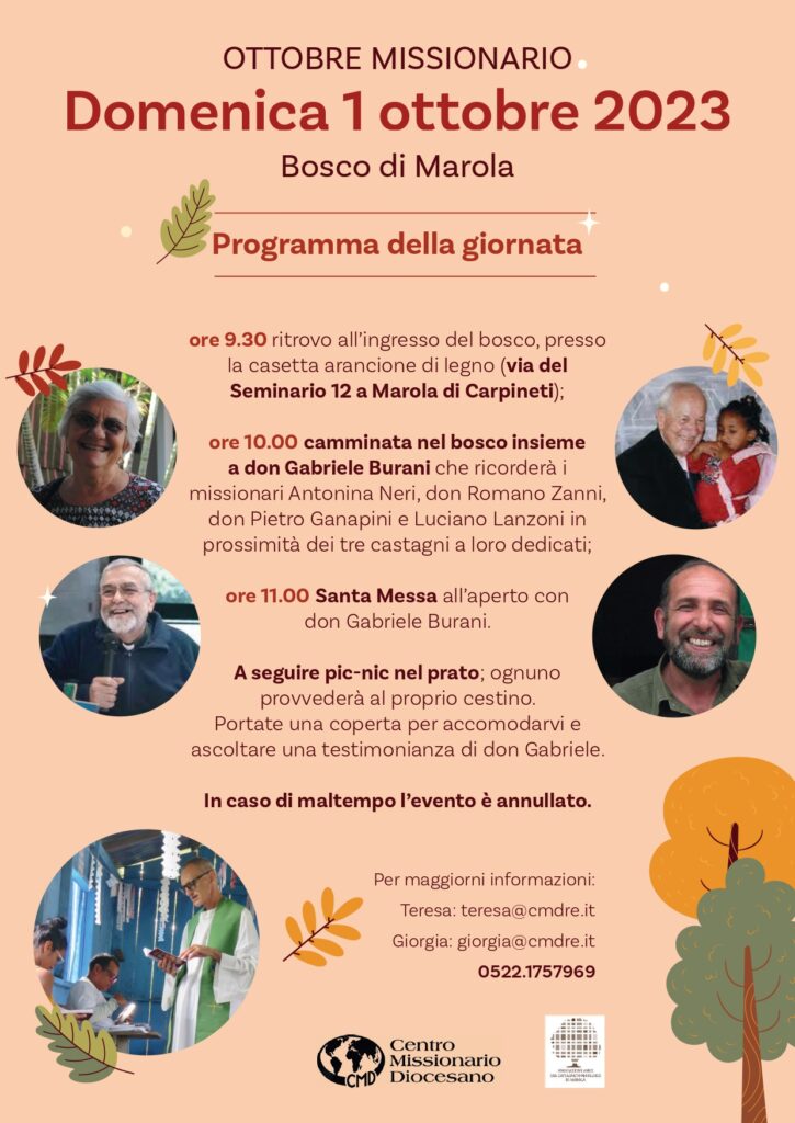 Domenica 1° ottobre, dalle 9.30, il Bosco di Marola inaugura l’ottobre missionario con una giornata in cammino nella natura per ricordare le missioni e i missionari che ci hanno recentemente lasciato.