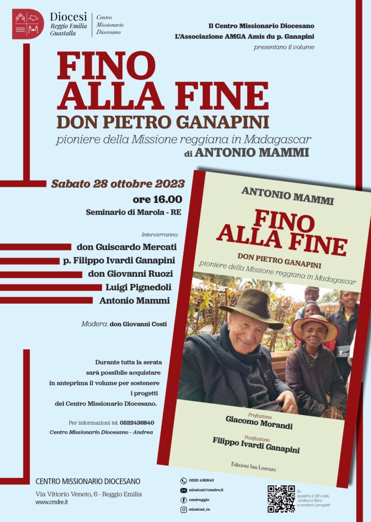 Continuano le presentazioni del volume di Antonio Mammi dedicato a Don Pietro Ganapini, il primo sacerdote missionario fidei donum della diocesi di Reggio Emilia, pioniere e patriarca della Missione reggiana in Madagascar. Dopo l’affollata serata di Reggio, vi aspettiamo il 28 ottobre a Marola, alle ore 16 nei locali del Seminario.