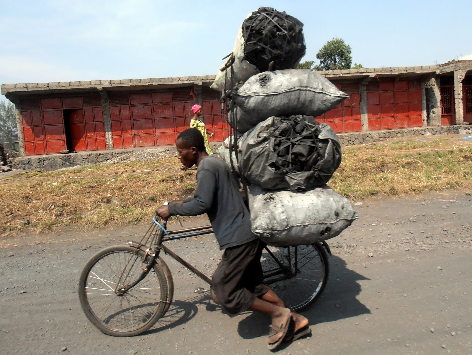 Una strada di Goma, tutta in pietra lavica. Sullo sfondo le abitazioni